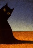 juodas katinas tamsiame kambary...