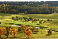 Ruduo + kitu kampu + karvės + ganyklos