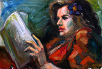 Mergaitė skaitanti laišką, o gal ir žurnalą.
