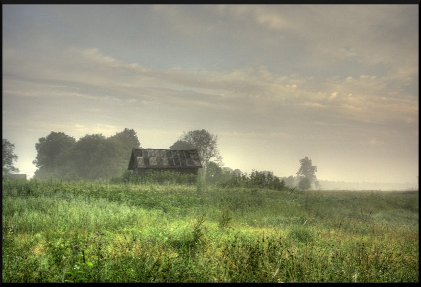 Kaimo pakraštys su trupučiu rūko