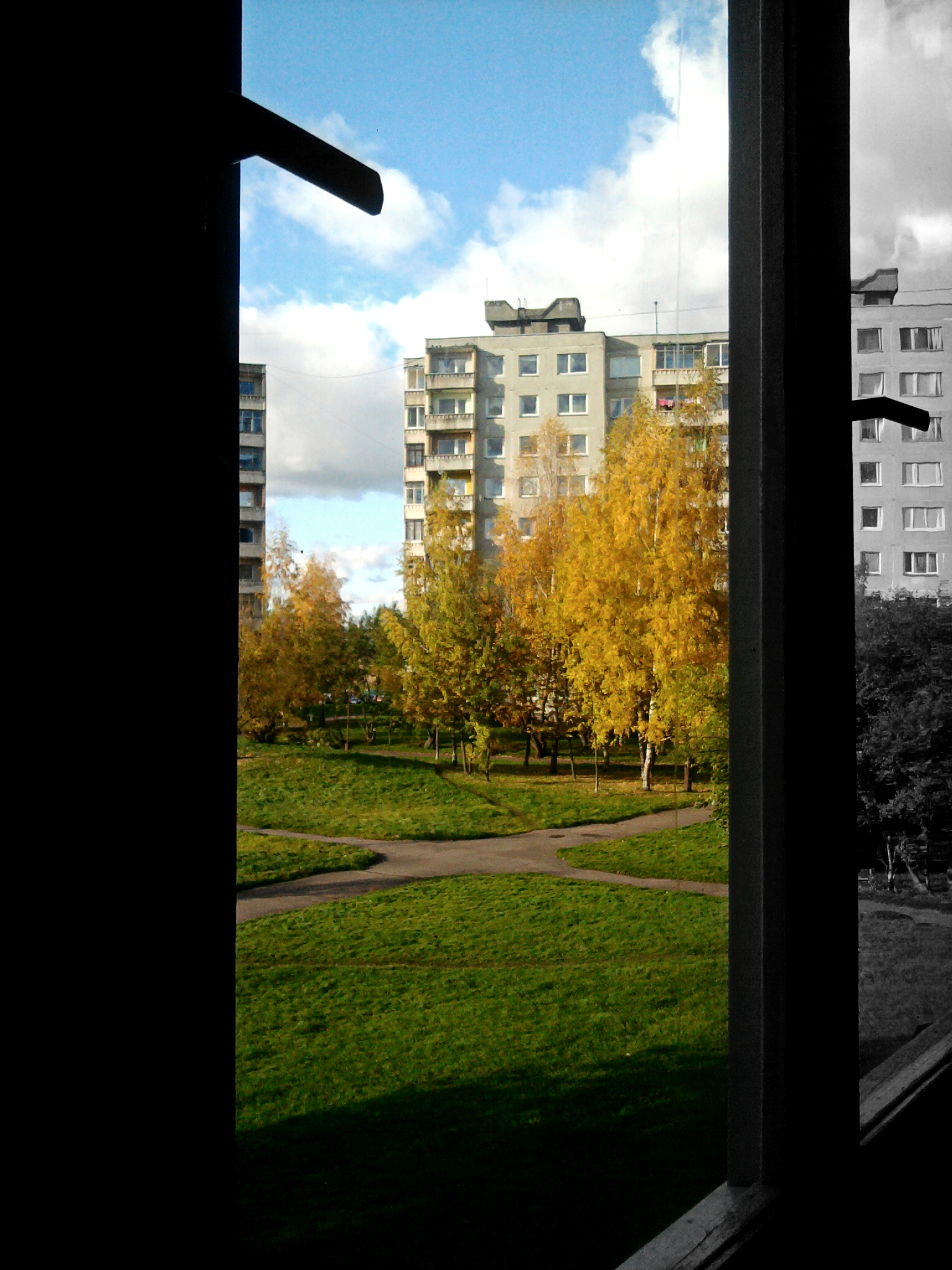 Spalvos irgi gali nusakyti be žodžių. 2011 metų ruduo, kuomet medžiai pasidabino auksiniais karališkaisiais rūbais. Į ateitį einame žingsniais, etapais. Lango rėmai - etapai, praeitis šį kartą tapo nespalvotas dešiniąjame kampe matomas vaizdas, ateitis spalvotas.