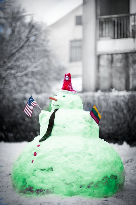 Po apsingtu klevu - baltai bespalvis sniegas.