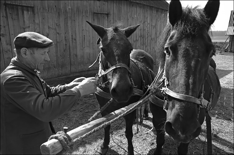 Šeimininkas su savo kumelėmis - jauna ir sena. Jaunai ir padūkti rūpi, sena gi... Visgi kolegės, draugės...