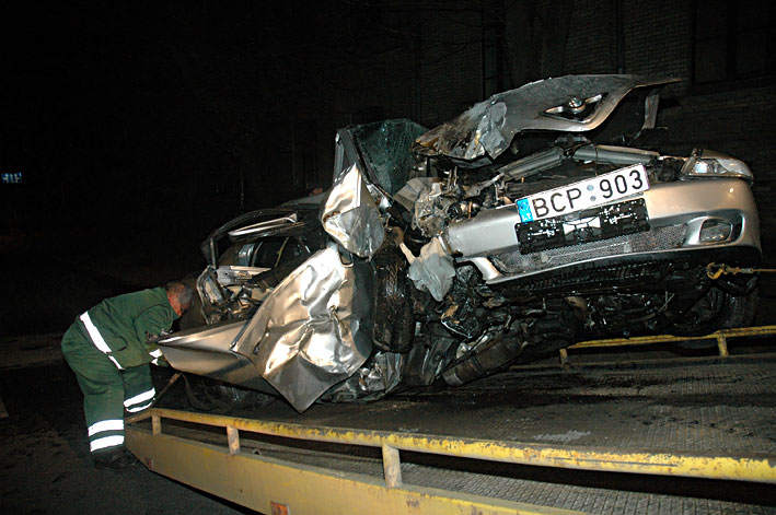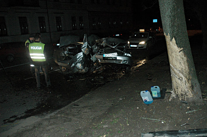 LABAS RYTAS VISIEMS. net keista, kad po tokio smugio i medi automobilyje "Alfa Romeo" dar liko gyvu zmoniu. masina daugiau kaip 50 metru slydo sonu, kol trenkesi i medi. po smugio automobilis uzsidege. du zmones is metalo lauzo kruvos islupo ugniagesiai2008.04.15 Vln mazdaug 4.15 val. ryto