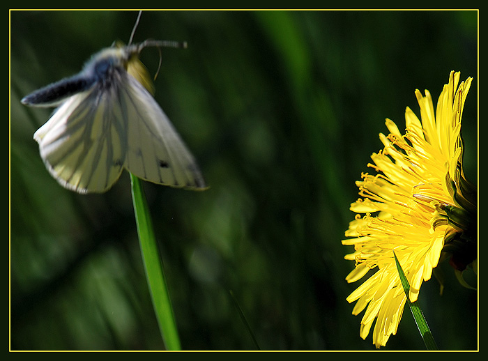 Griežtinio baltuko (Pieris napi L.) skrydis "saulės" link...