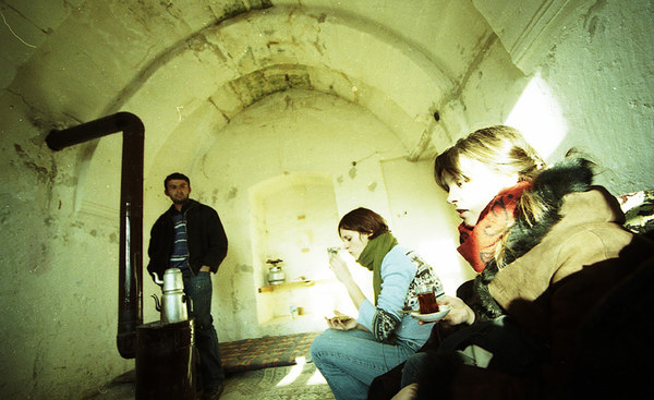 Gali kabarotis kalnais ieškodamas kelio, ropoti urvuose, trinti vieną į kitą ledines rankas ir iš troškulio burnoje tirpdyti sniegą, arba būti pakviestas arbatos - pasirodo, su uola suaugusiame nežinia kelinto šimtmečio būste pora vietos čiabuvių įrengė vietinės reikšmės arbatinę. Ji pasižymi: agresyviai kaitria buržuijka, dideliu, draugišku šunimi, rytietiško primityvizmo dizainu, molinėmis grindimis, raštuotais patiesalais. To su kaupu pakanka. Ypač po to, kai arbatos virtuozai pūstašonėse stiklinaitėse žonglierių miklumu atskraidina arbatos. Išmuša karštis, akys apeina rūku, šypsaisi lyg sapnuotum - lyg sapną fotografuotum. Arbatos niekada ne pro šalį - dabar tai žinai, ir kitą kartą nebenustebins laukiniame krašte aptiktas aukščiausio lygio aptarnavimas. Juk čia ne koks parketu išmuštas žvaigdučių viešbutis.
