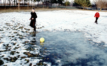 Žiemą, ant sniego, futboliuką, a?