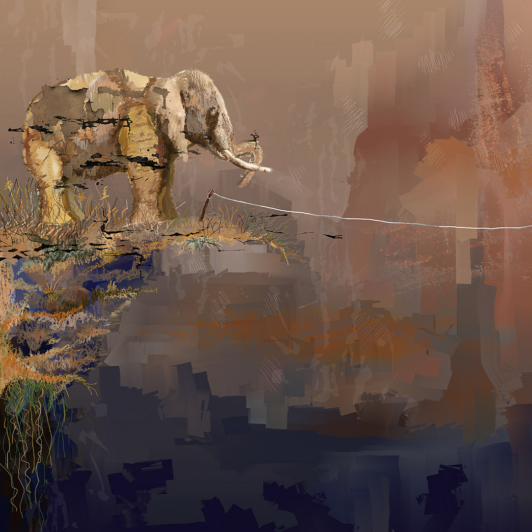 Labai grazus darbas. Atkartojantis sovietinio multyplykacinio filmuko apie kiaule taupykle siuzeta. Cia atvaizduota sudetingo siuzeto vieta, kai visi choru saukia "Drasiau drambli, drasiau drambli", o kiaule taupykle tuo metu knisasi po spinta ir galu gale tragiskai palieka si pasauli, o dramblys pamato vaivorykste. Labai grazus Mindaugelio vidinio pasaulio autoportretas ir svarbiausias sio darbo veikejas kiaule (simbolizuojantis tikraja Mindaugelio esme) cia yra nematomas. +pianki.