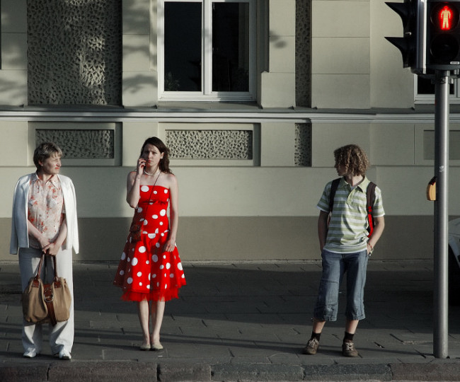 Super kadras... Viskas atrodo kaip trumpas pasakojimas.... net ir šviesoforo žmogėliukas atrodo žiūri į tą fainą panelę...