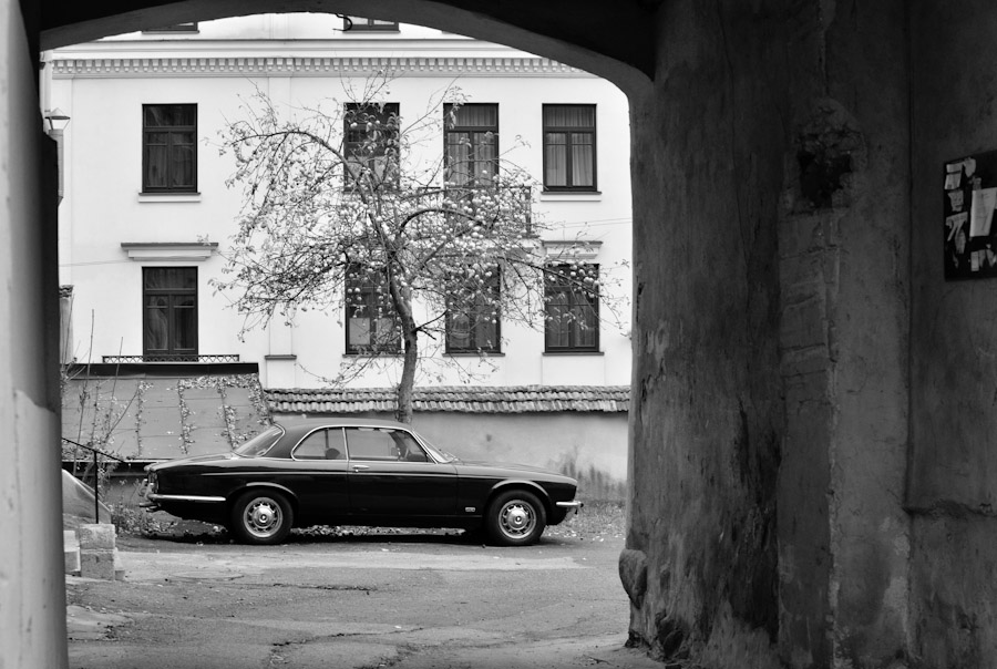 Senas automobilis ir jaunas medis