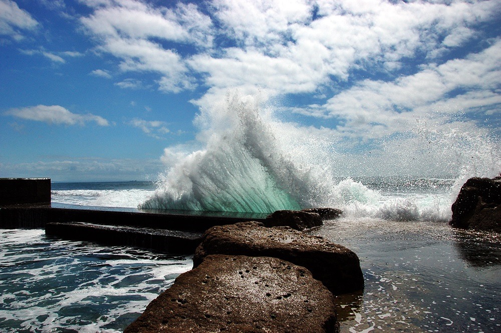 vanduo grūmoja debesims, efektingas kirtis